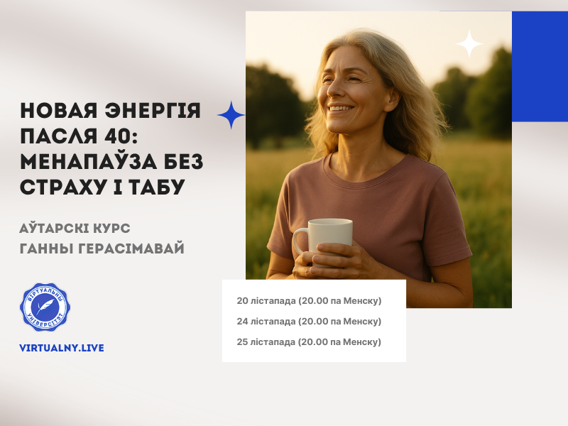 Асаблівасцю курса стане шчырая размова пра менапаўзу без табу і сораму – з навуковымі фактамі, асабістымі гісторыямі і цеплынёй жаночай падтрымкі.